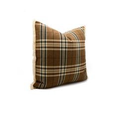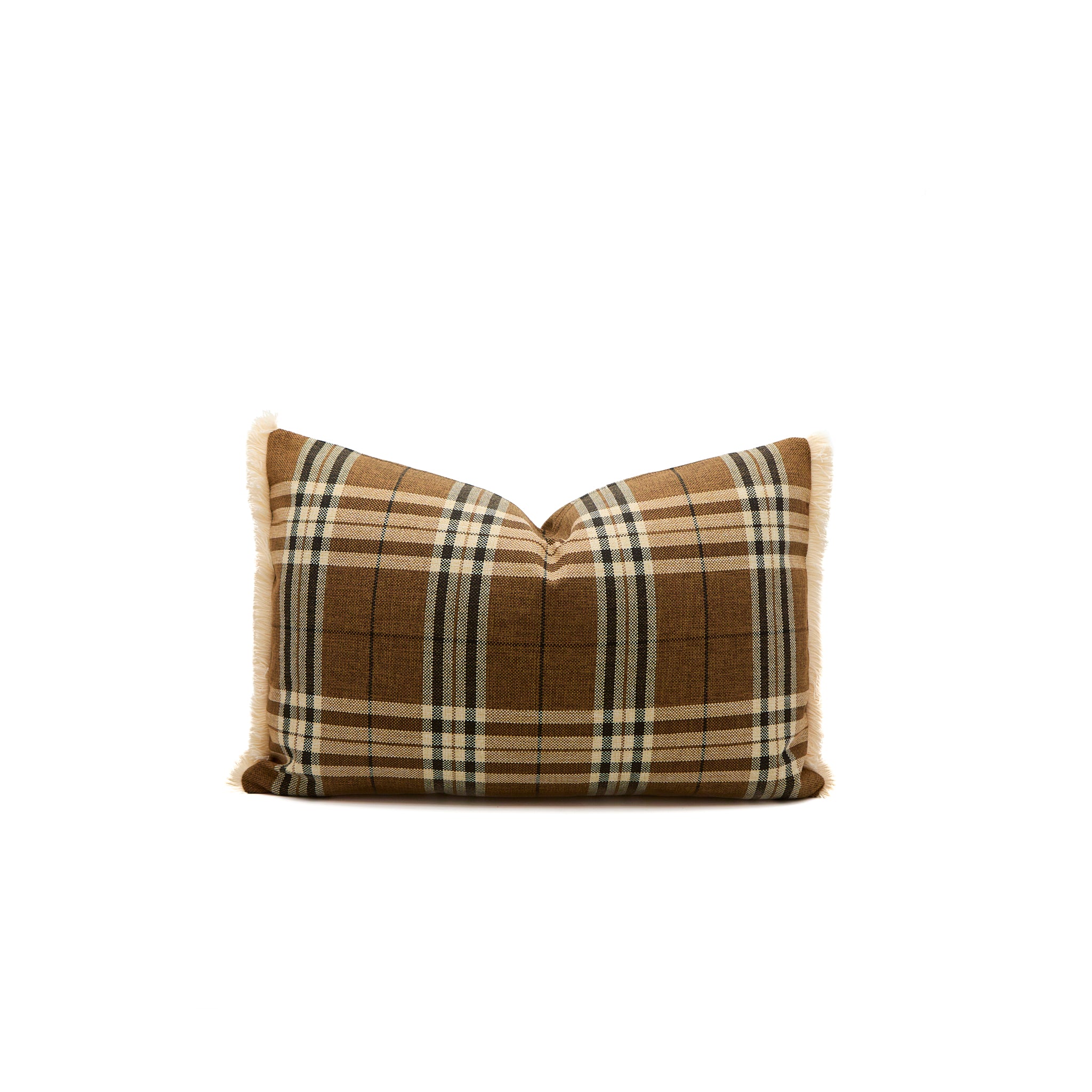 Plaid Pillow with Brushed Fringe Removable insert Brushed cotton fringe Body: cotton / polyesterFill: 100% feather....