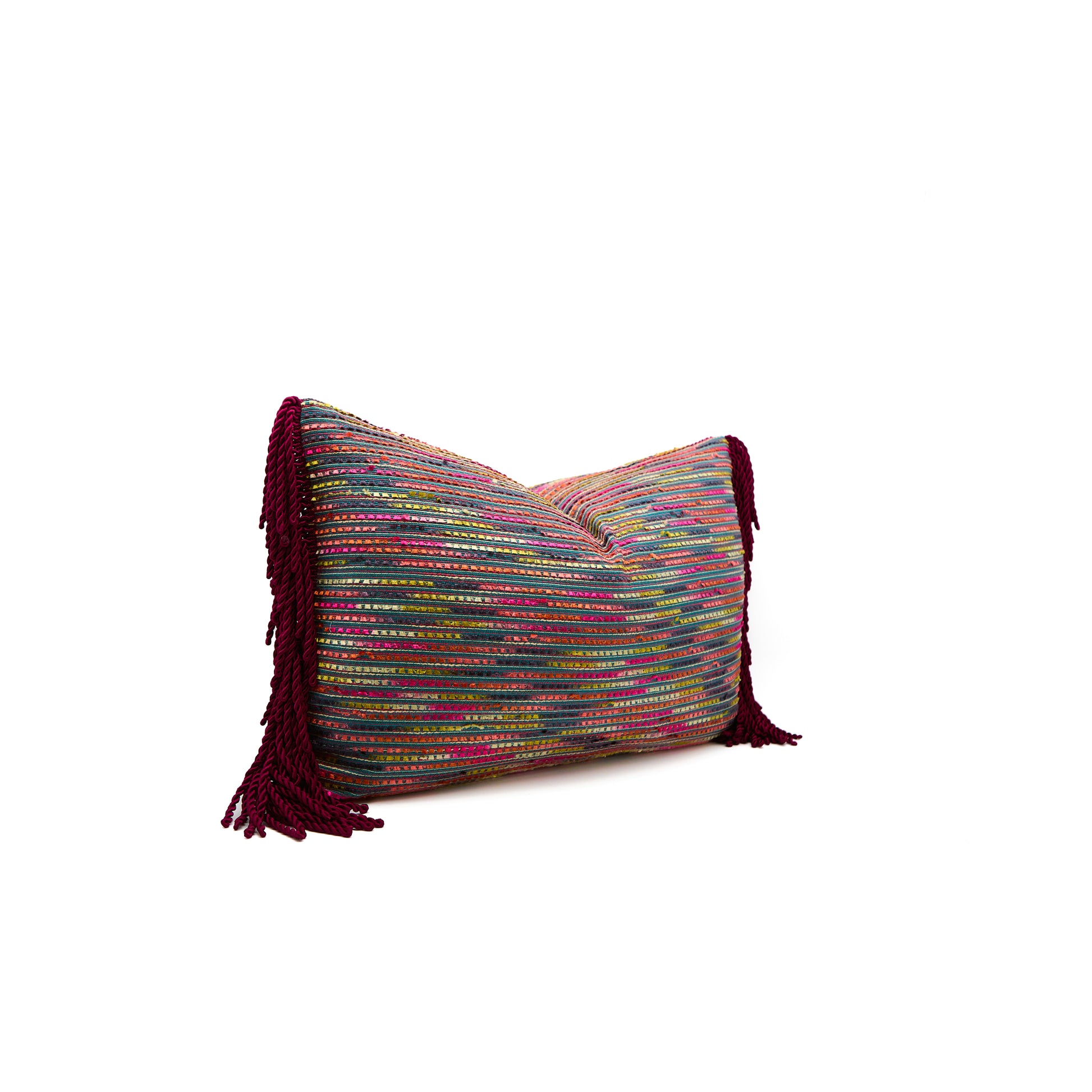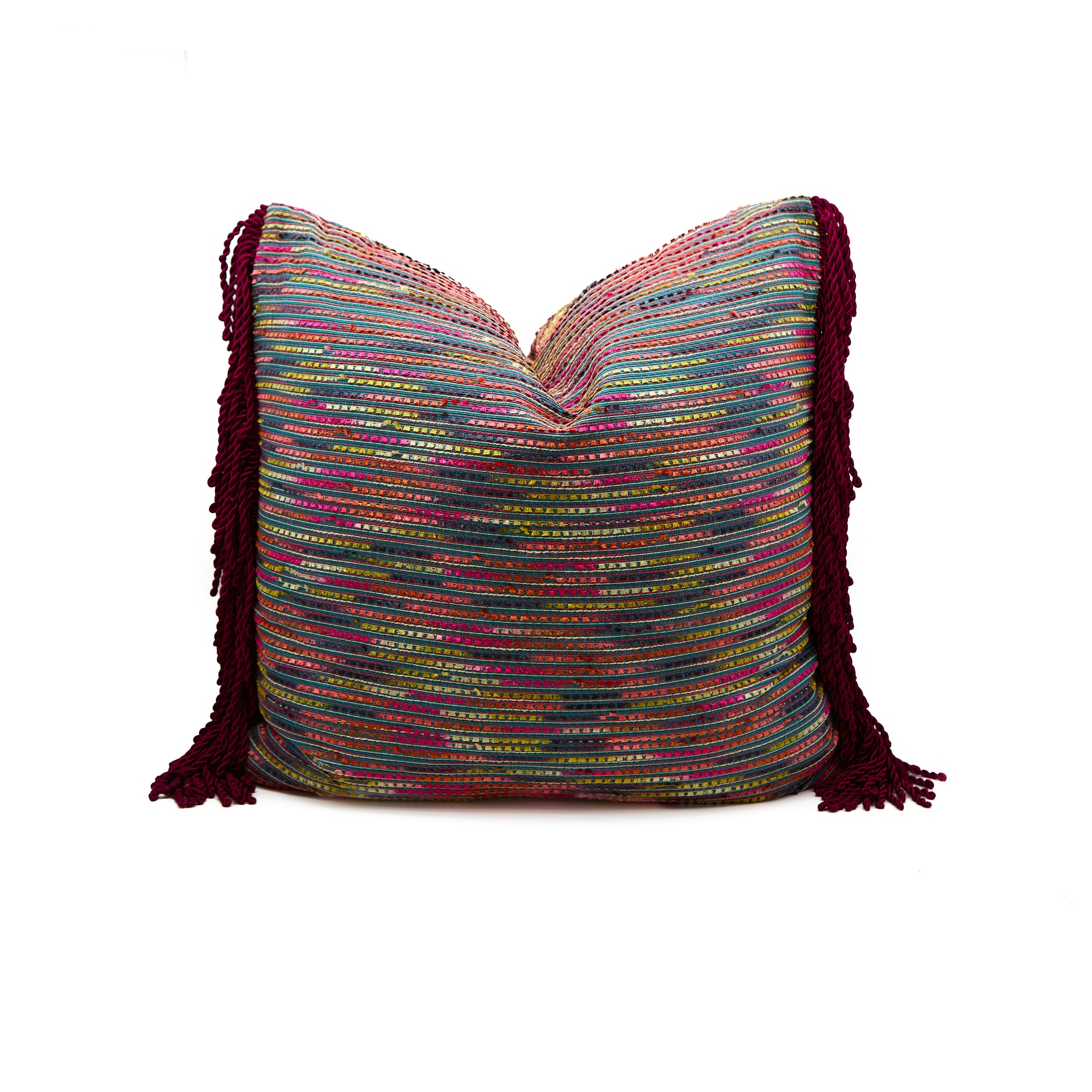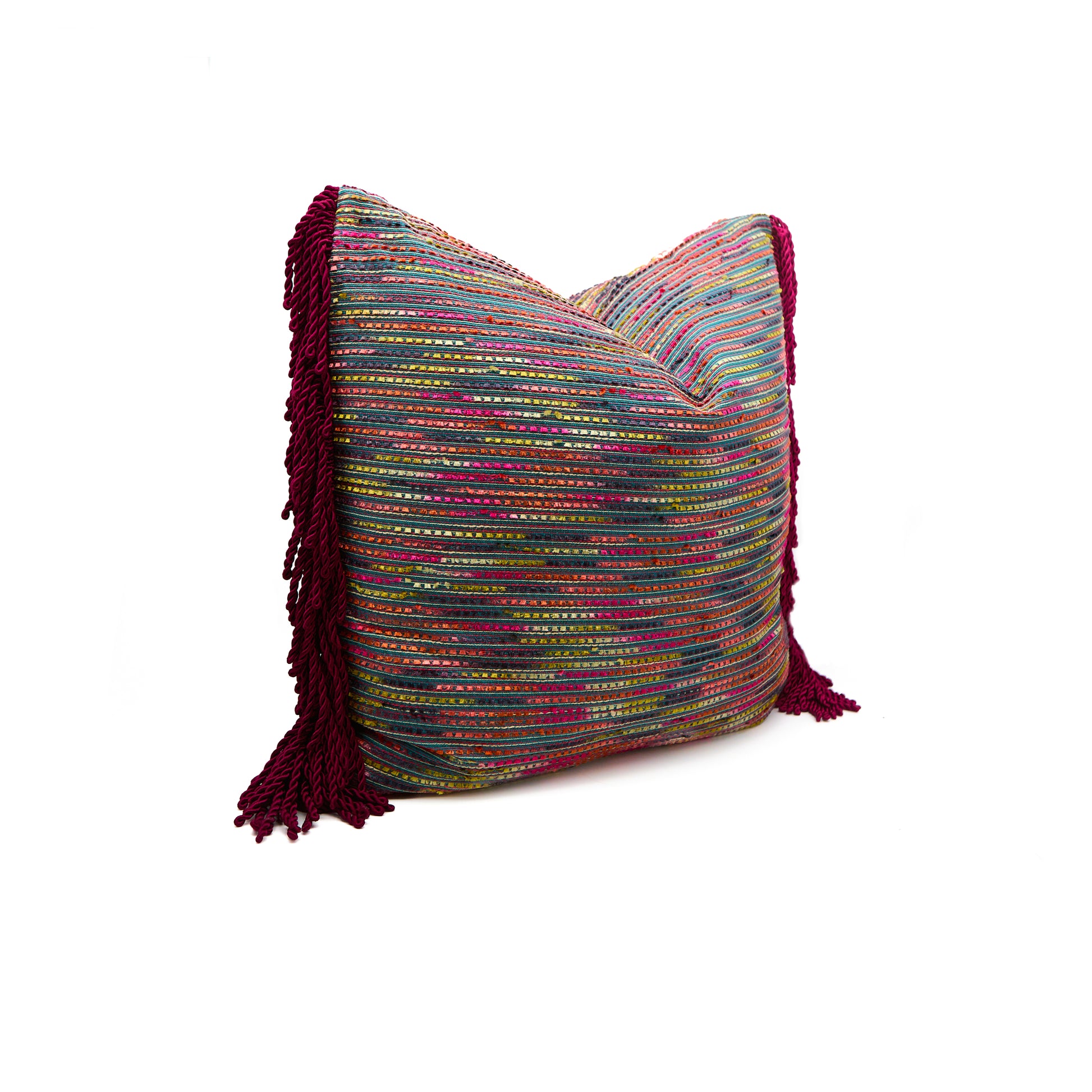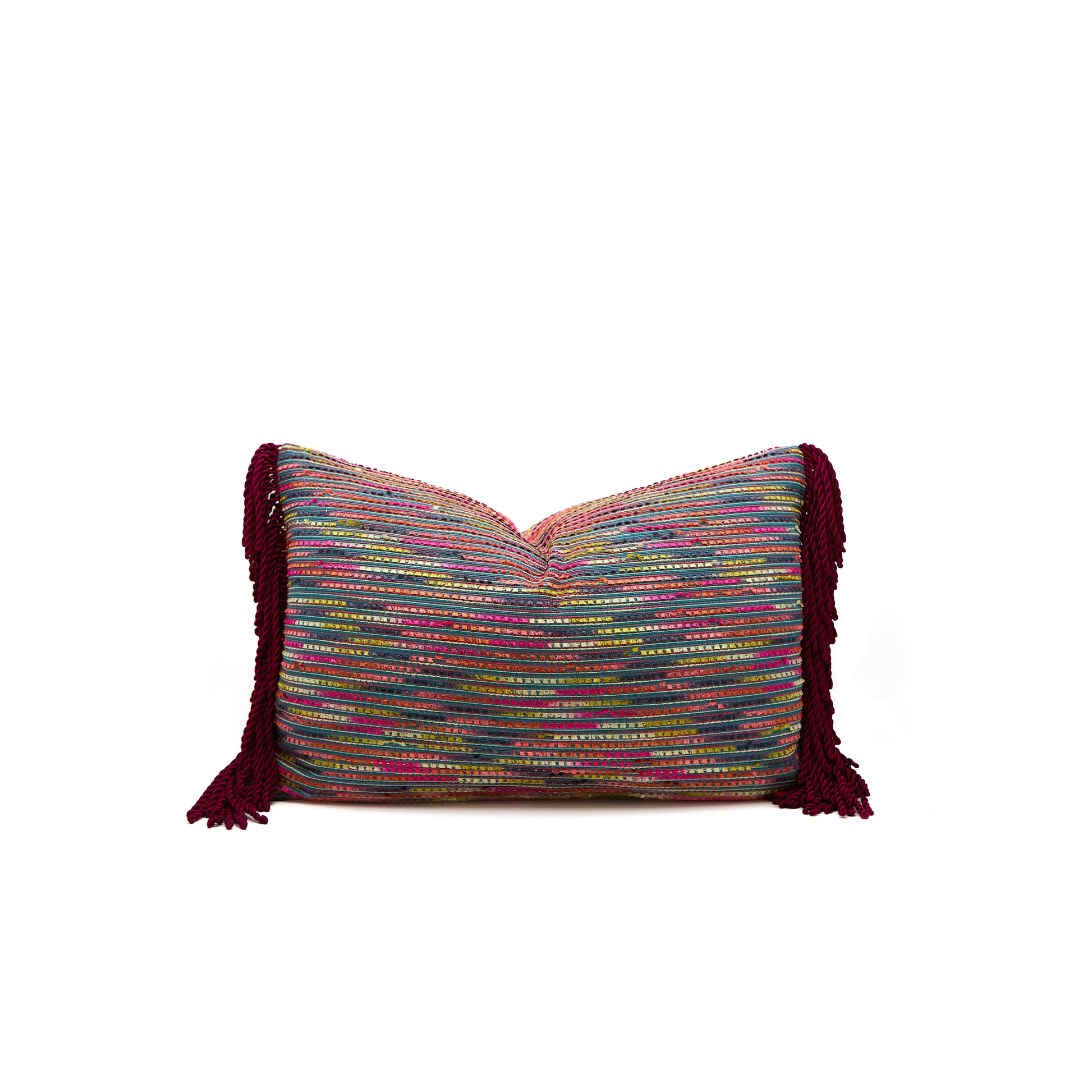 Multicolour Eyelash Jacquard Pillow with Bullion Fringe