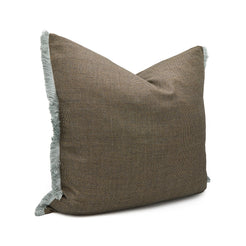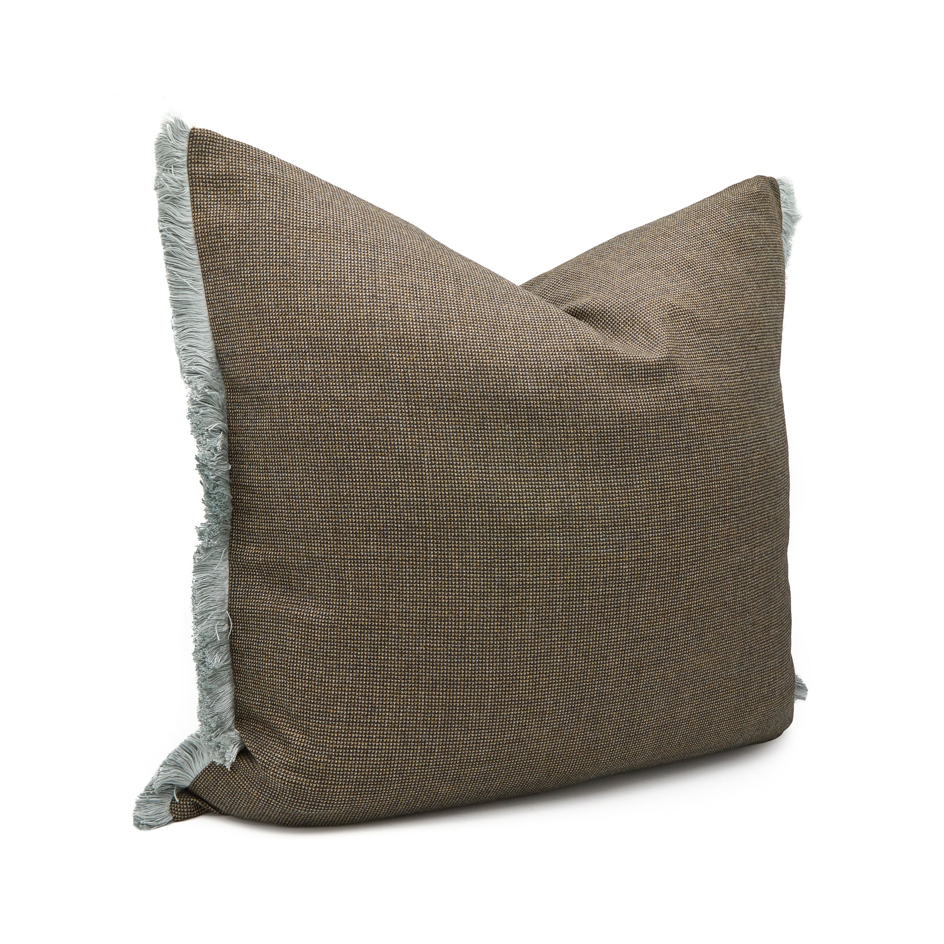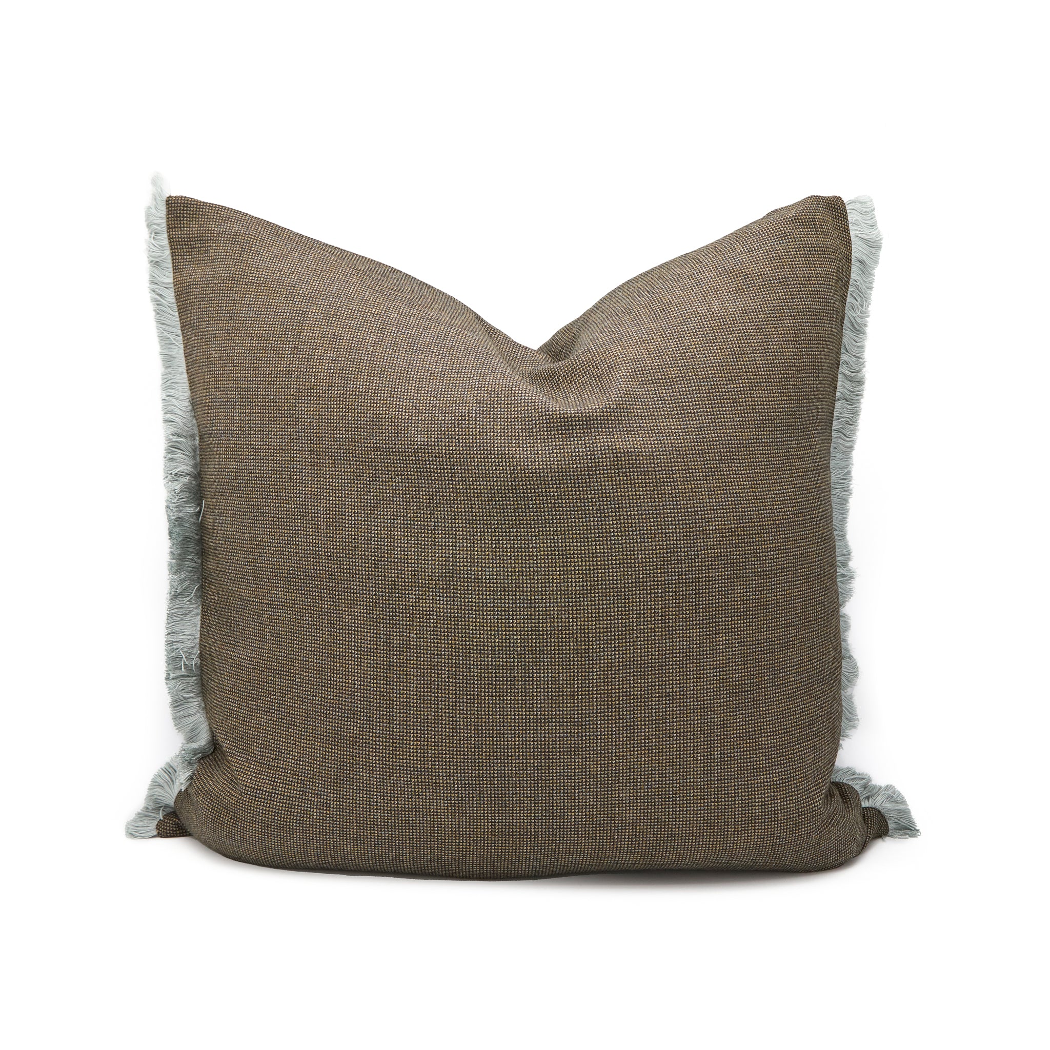 Brown micro-check wool with soft blue fringes · Zip closure at base· Removable insert· H26" x W26" Body: 100% woolFil...