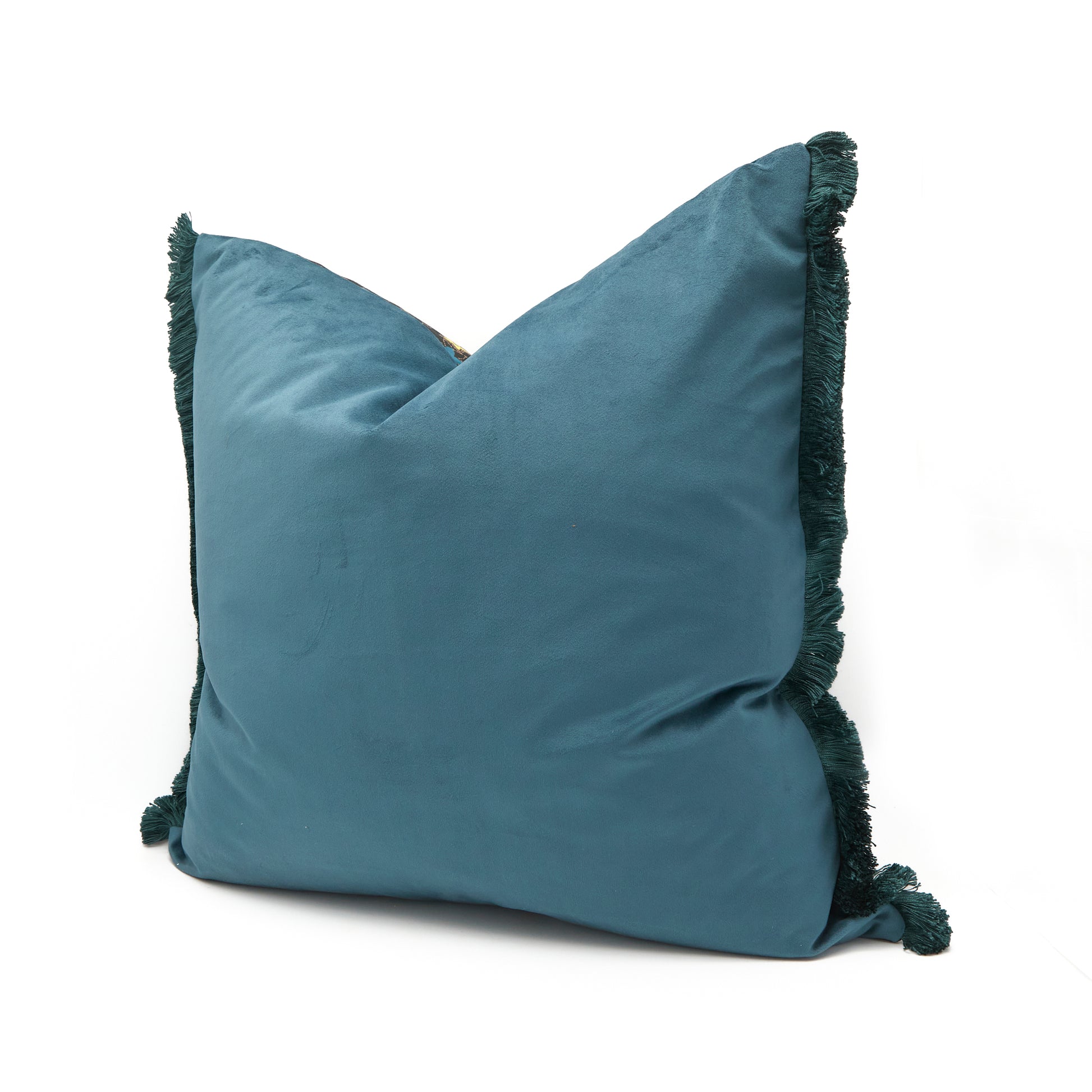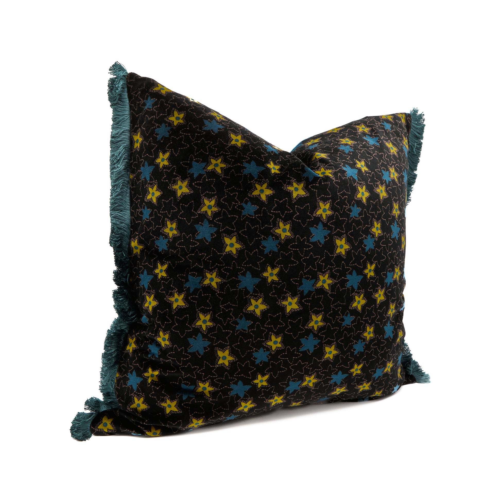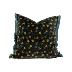 Teal Velvet & Nightfall Stars Pillow with Teal Fringe