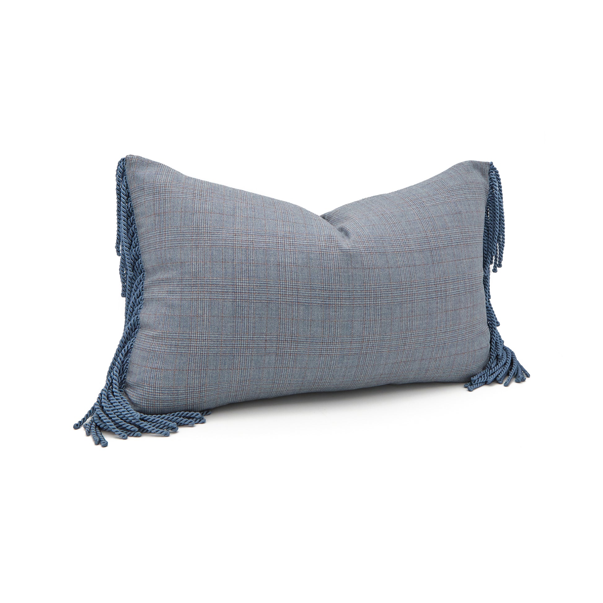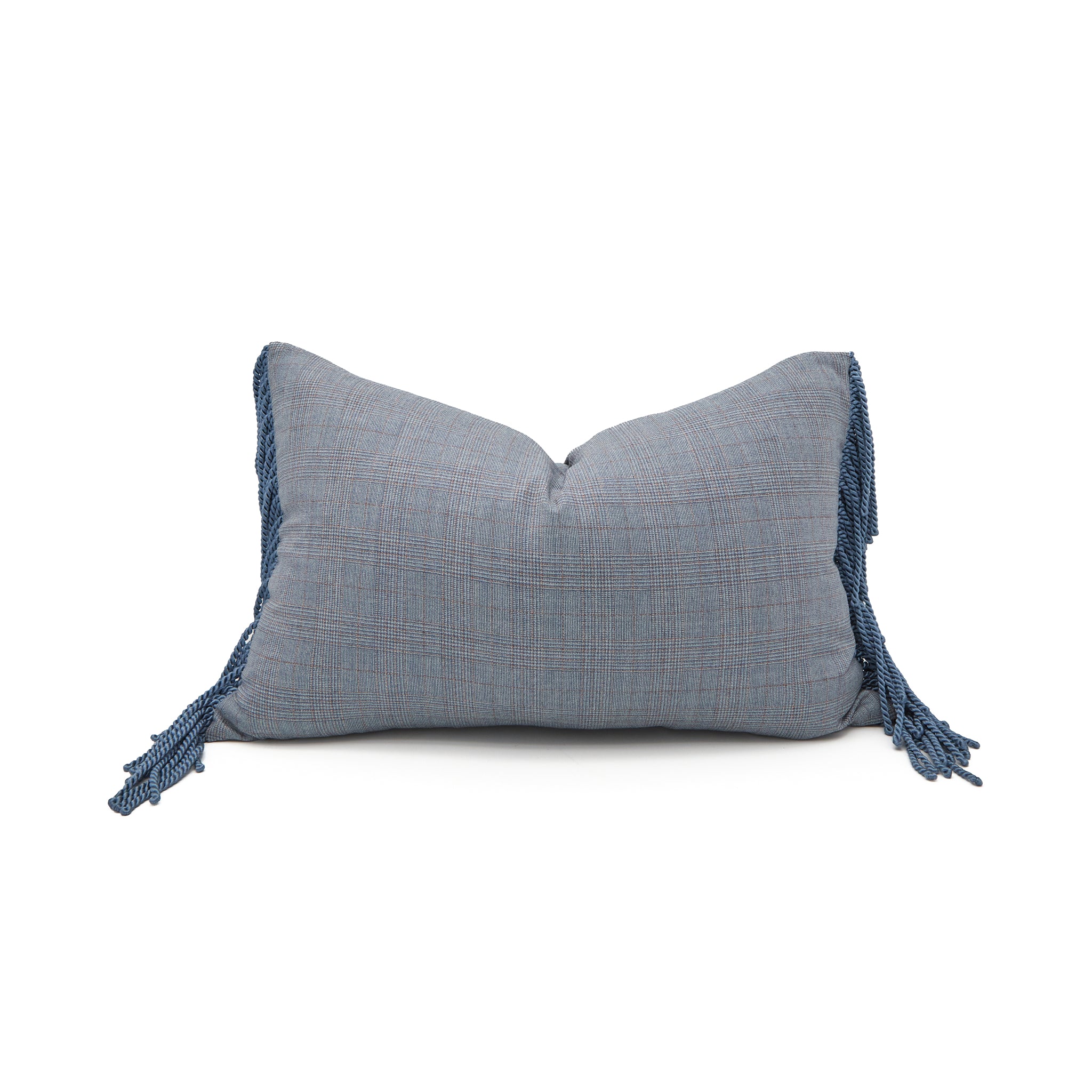 Blue Plaid Wool Lumbar Pillow with matching Bullion Fringe
