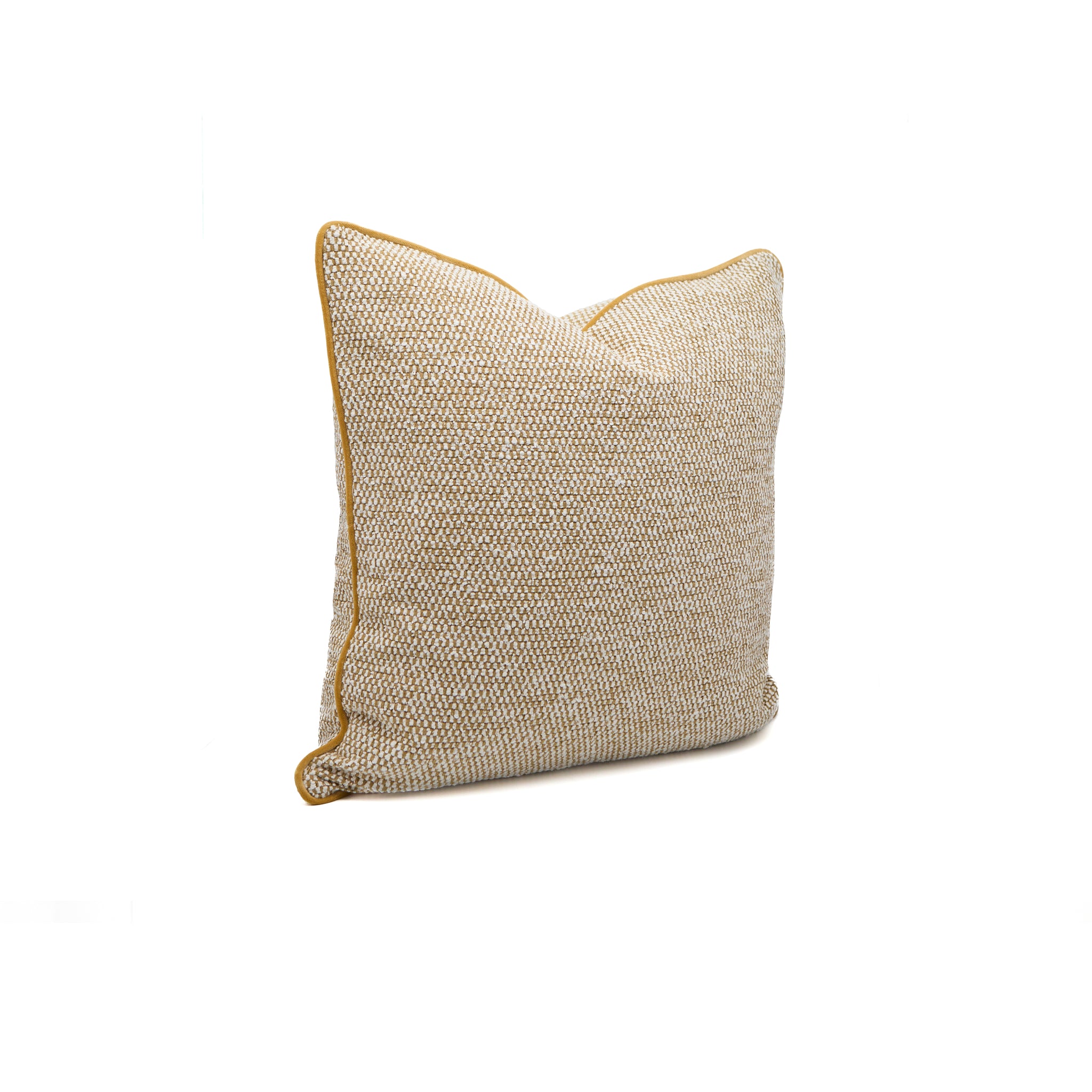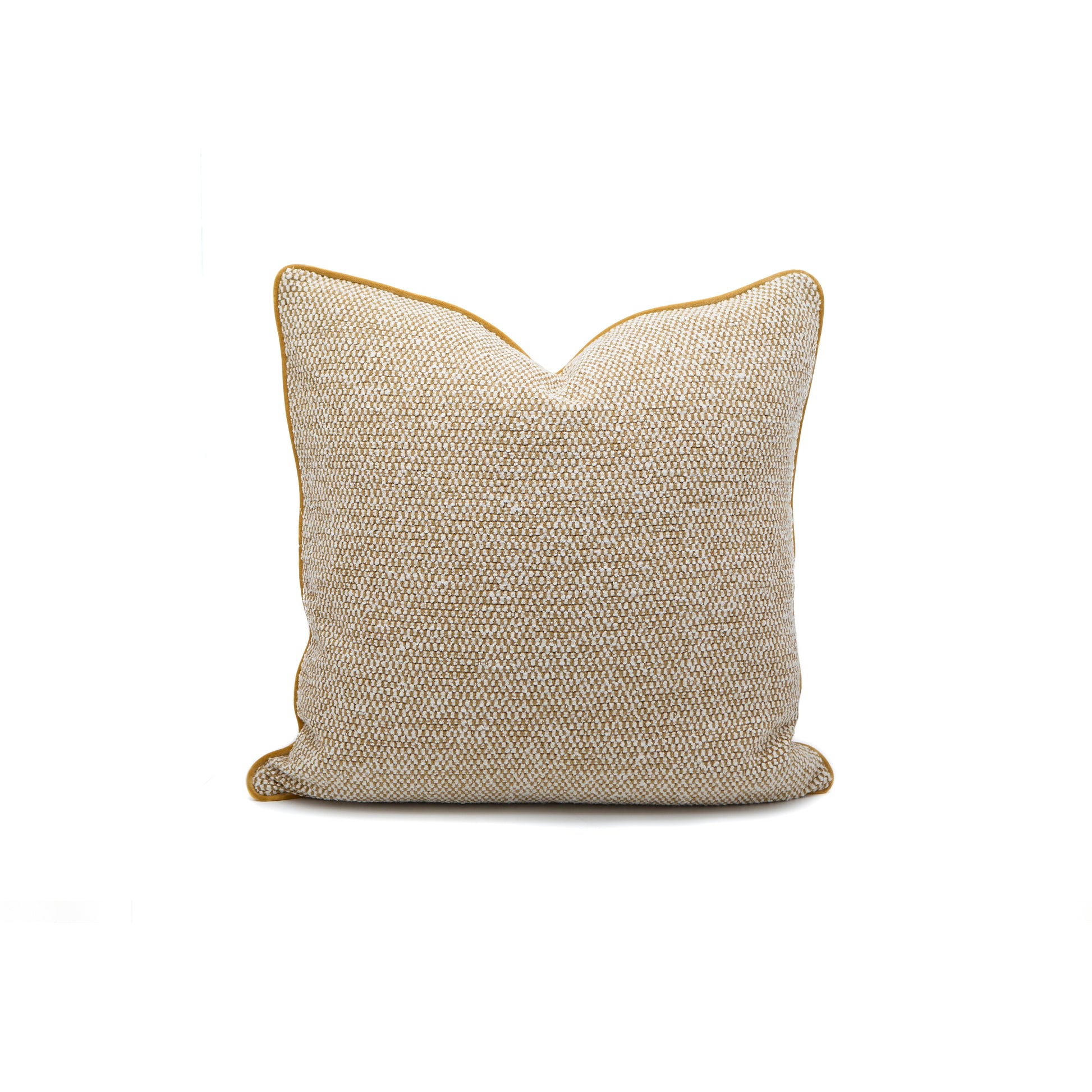 Camel and Ivory Boucle Pillow with Velvet Piping