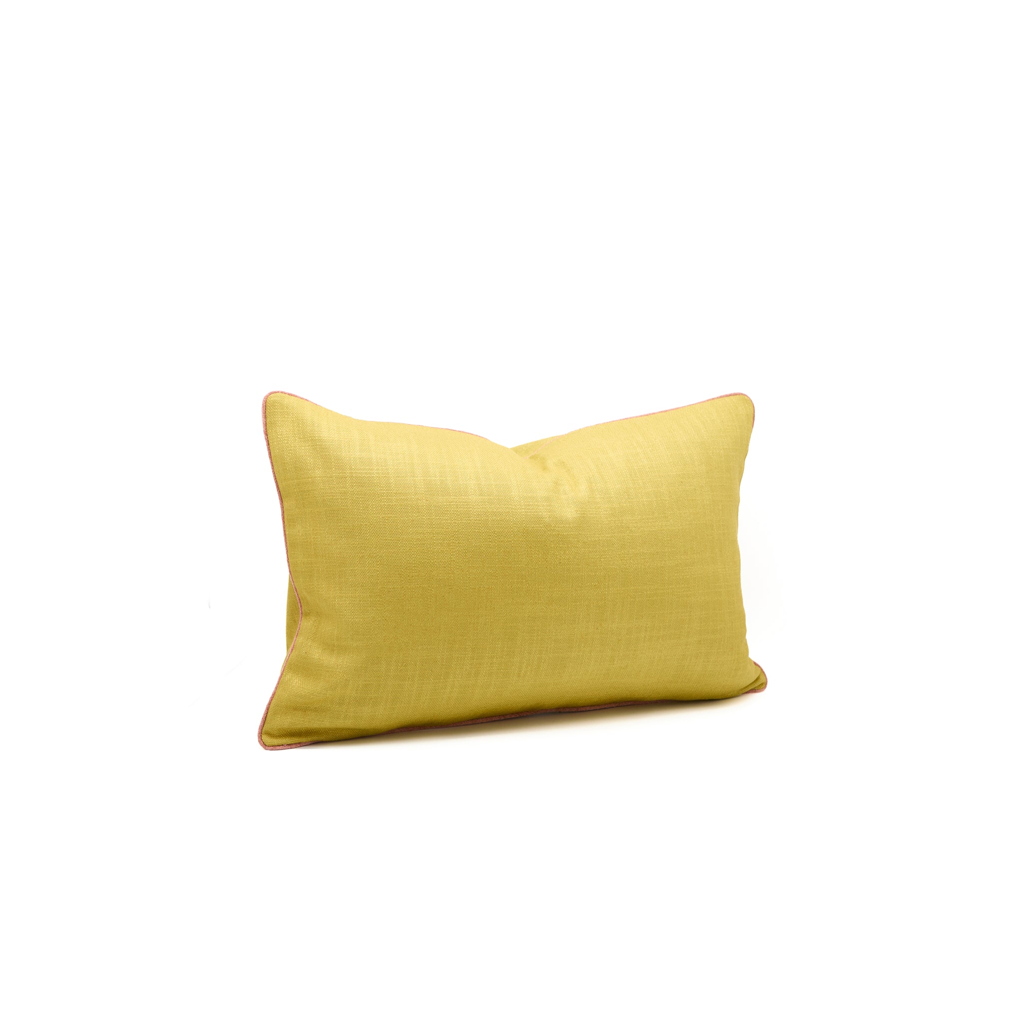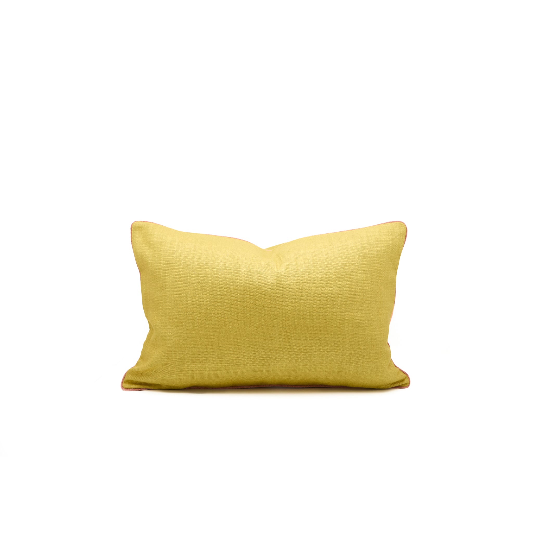 Chartreuse Faux-Linen Pillow with Blush Piping· Removable insert· H16" x W24" Body: 100% polyesterFill: 100% feather....