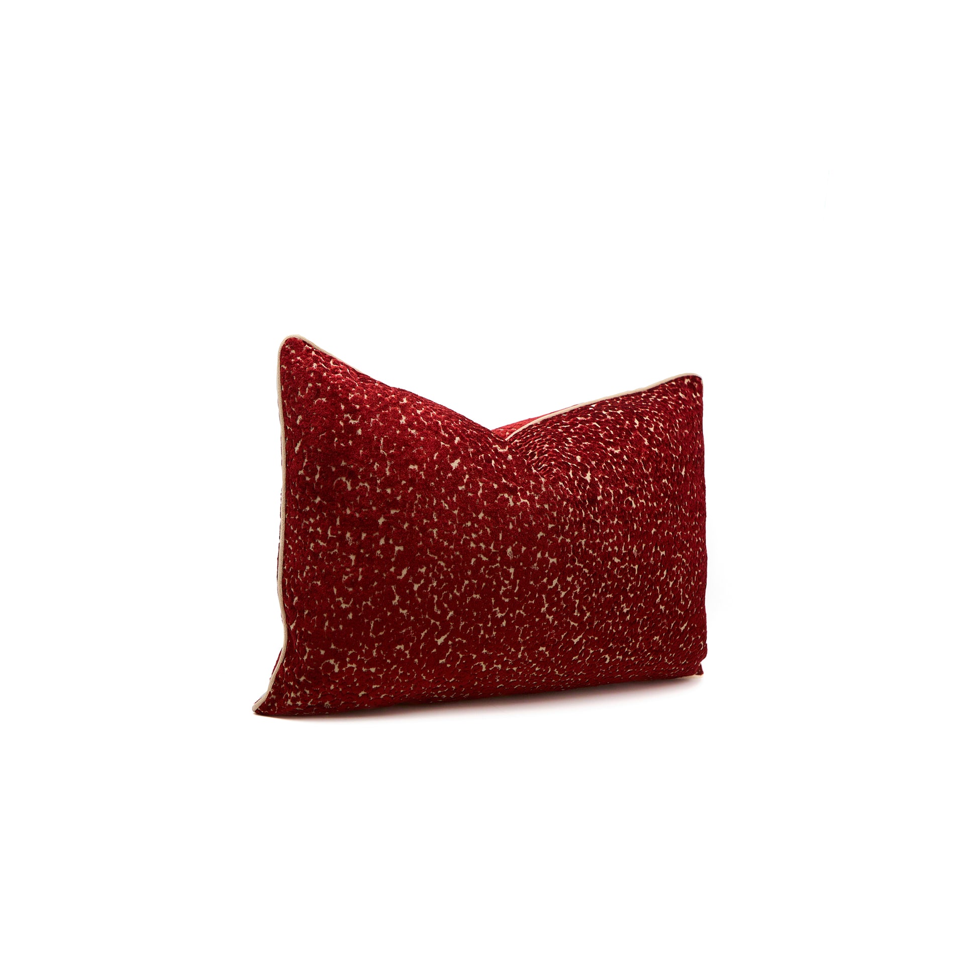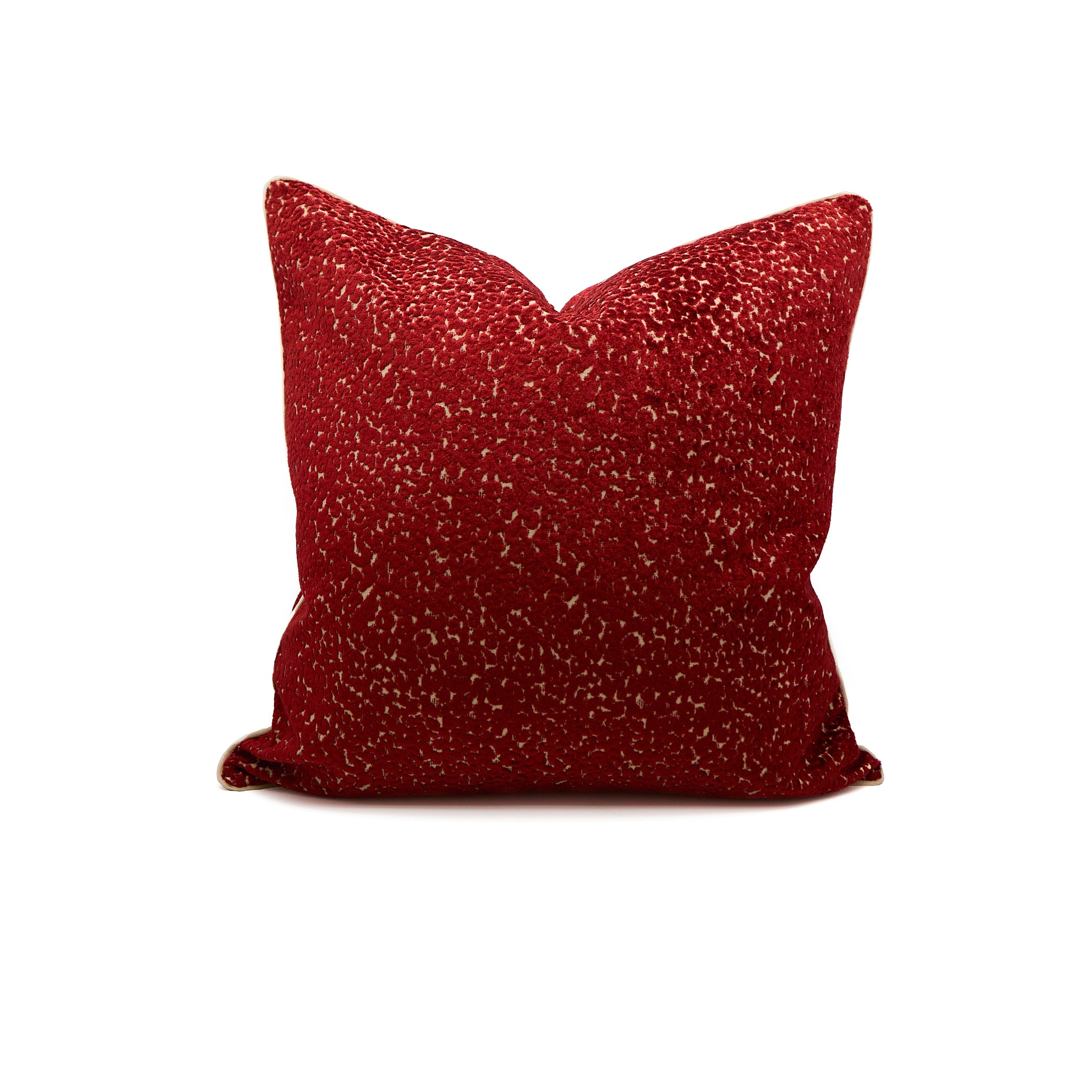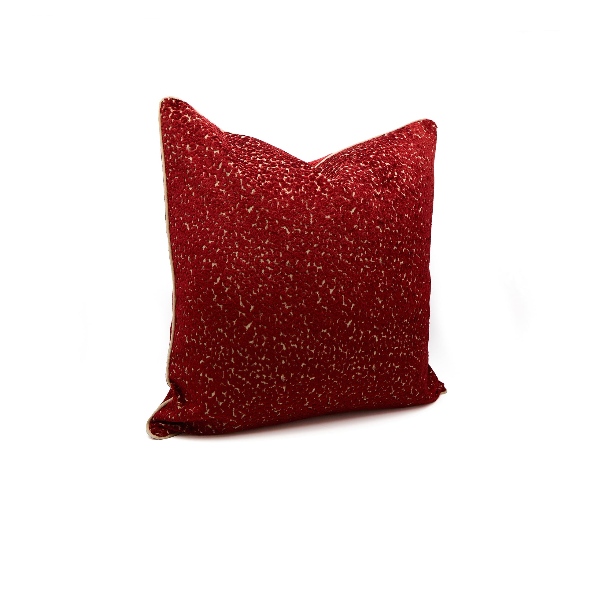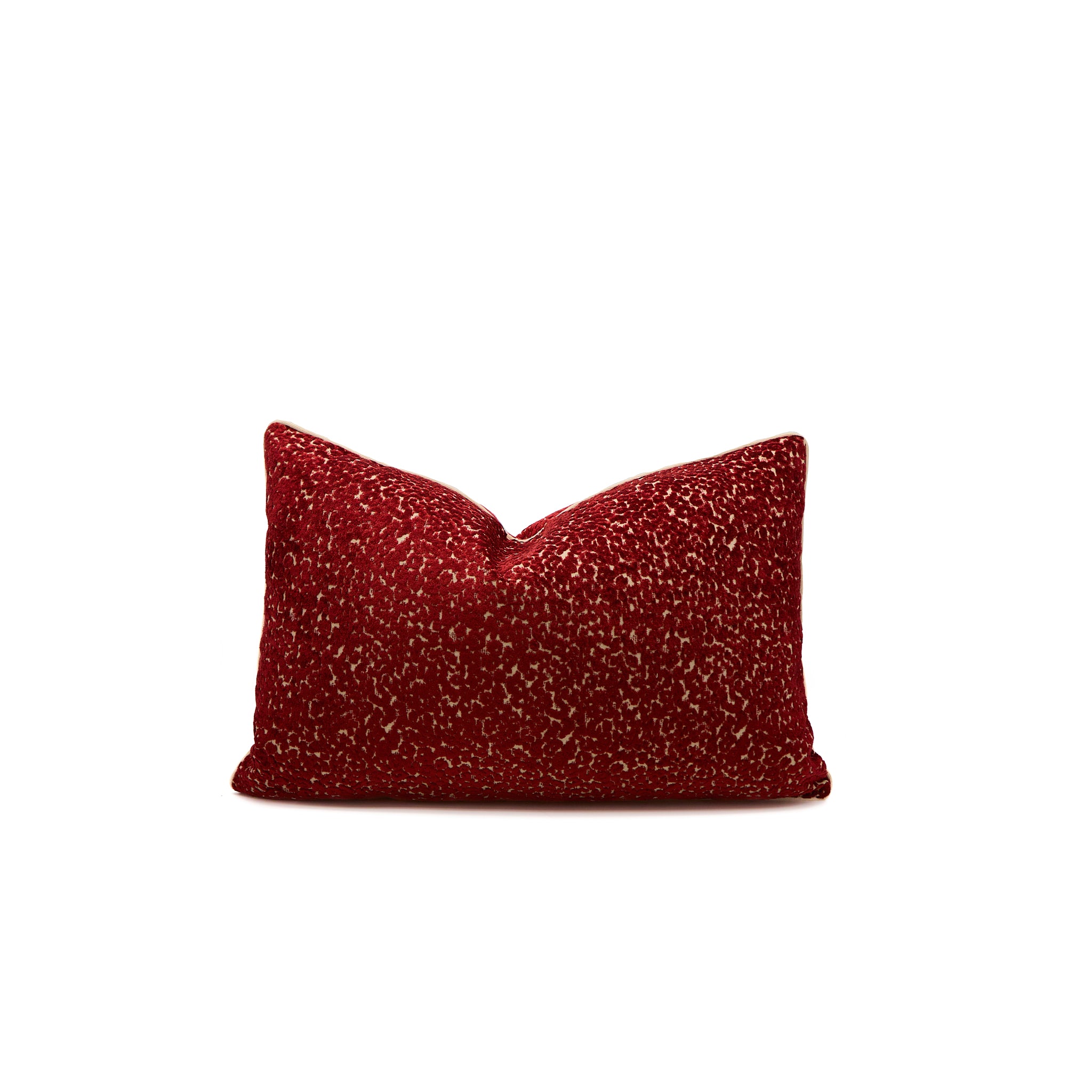 Burgundy Cut-Velvet Pillow Removable insert Velvet piping Body: cotton / polyesterFill: 100% feather. Handmade in M...