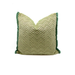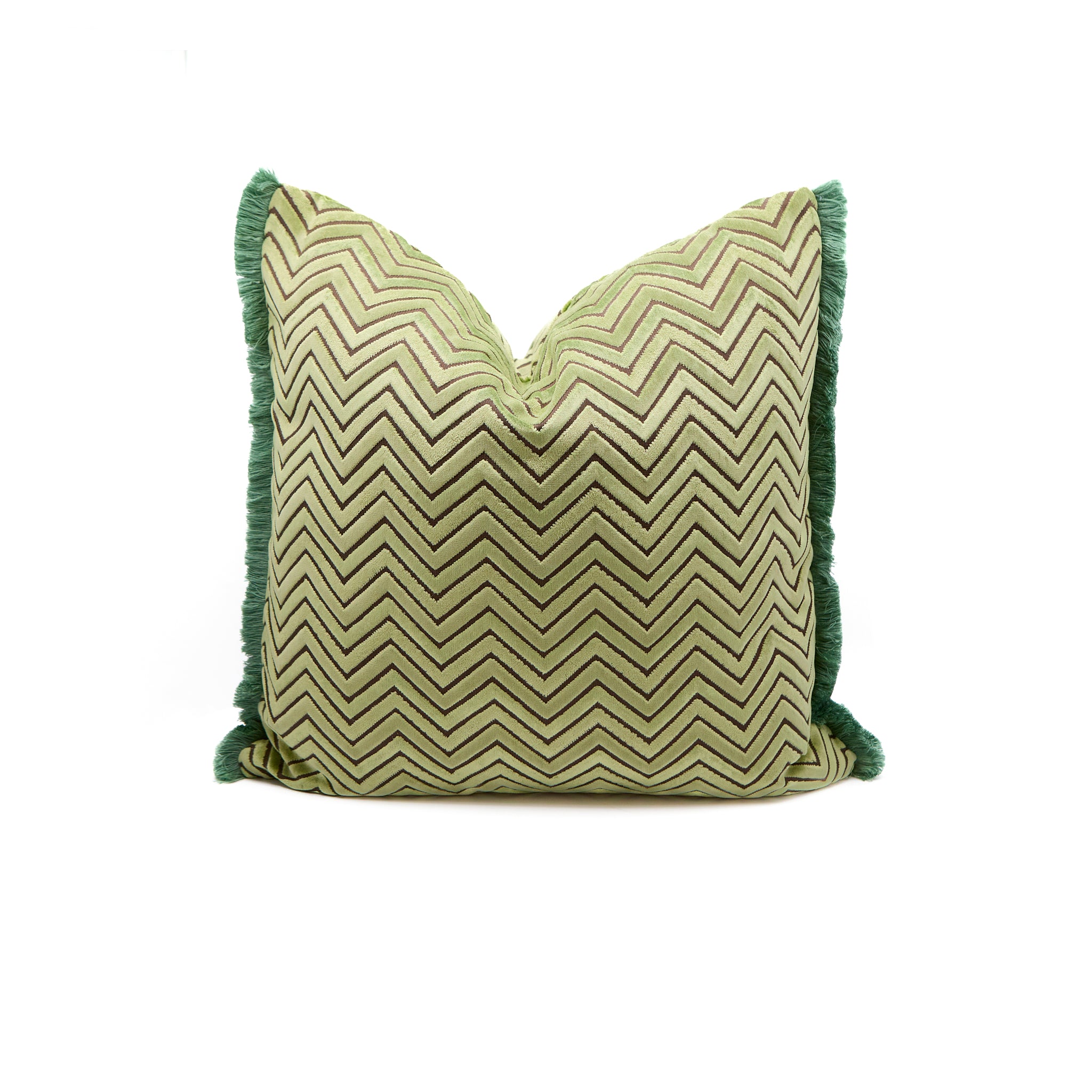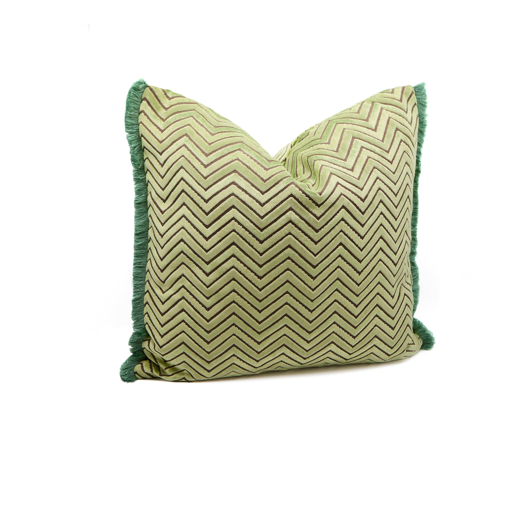 Mint Cut-Velvet Pillow with Brushed Fringe