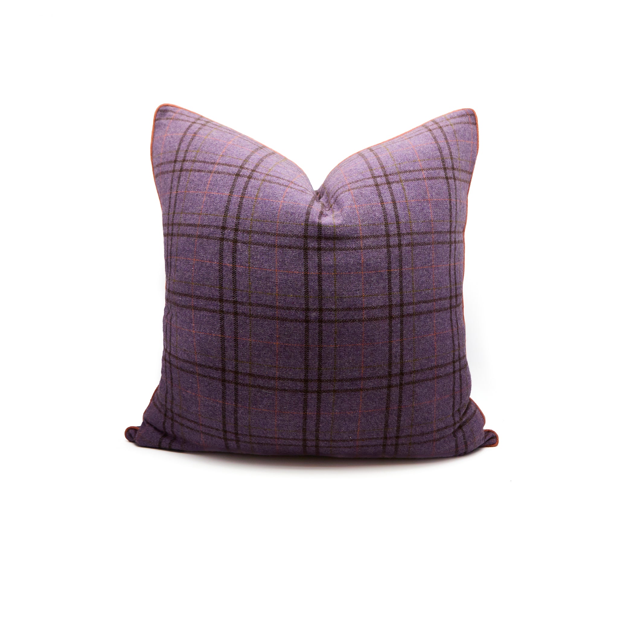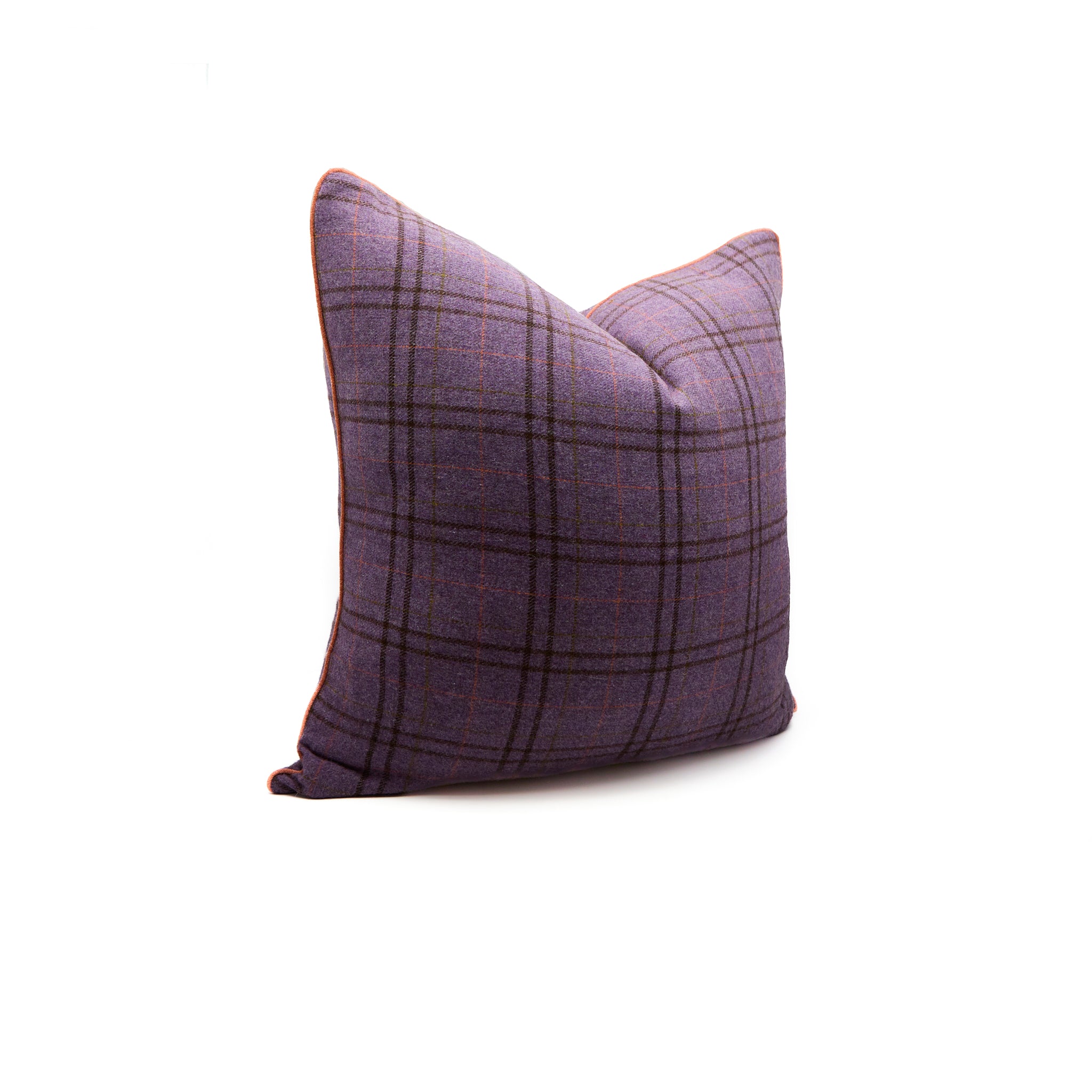 Wool Plaid Pillow with Contrast Piping Removable insert Chenille piping Body: 100% woolFill: 100% feather. Handmad...